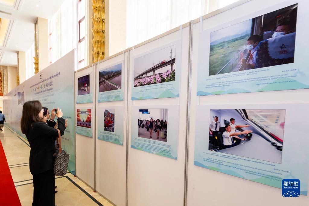 12月7日,在老撾首都萬象,來賓參觀“中老命運共同體建設成果”圖片展。新華社記者 朱煒 攝
