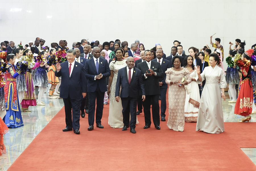 出席論壇峰會(huì)的51個(gè)非洲國家元首、政府首腦及配偶,2位總統(tǒng)代表,非盟委員會(huì)主席和聯(lián)合國秘書長等貴賓陸續(xù)抵達(dá)人民大會(huì)堂。習(xí)近平和彭麗媛熱情迎接,同他們分別握手問候,并集體合影留念。