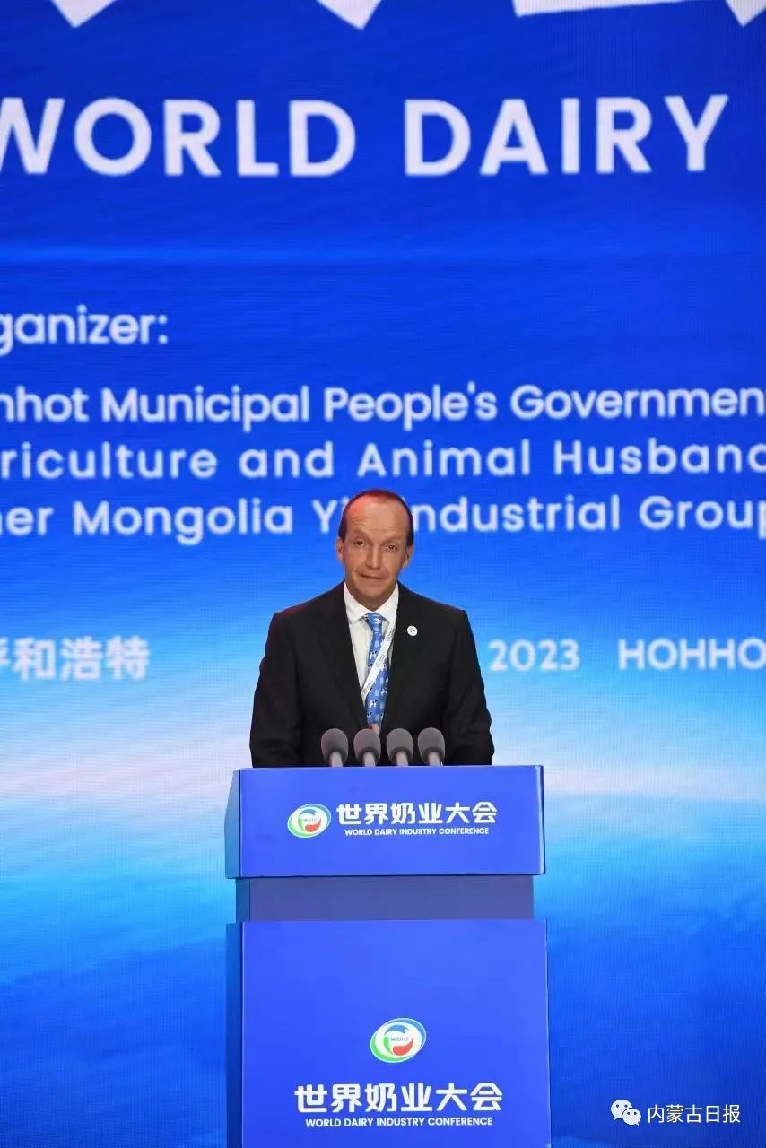 國際乳制品聯(lián)合會主席皮埃爾克里斯蒂亞諾·布拉扎勒致辭。記者 韓卿立 攝