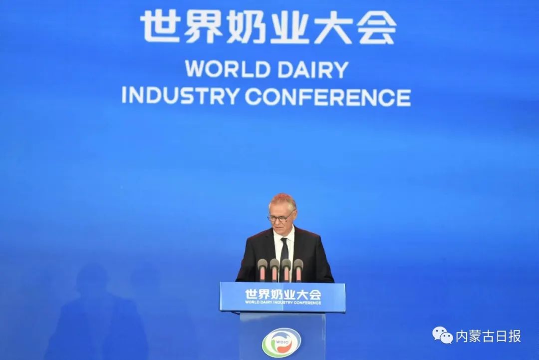 開幕式上,國際乳制品聯(lián)合會主席皮埃爾克里斯蒂亞諾·布拉扎勒致辭,呼和浩特市委副書記、市長賀海東作呼和浩特奶產(chǎn)業(yè)推介,中國奶業(yè)協(xié)會、國際食品科學(xué)技術(shù)聯(lián)盟分別向呼和浩特市授予“中國奶業(yè)育種之都”、“世界乳業(yè)科技之都”稱號。與會嘉賓共同見證了國家乳業(yè)技術(shù)創(chuàng)新中心總部落成啟用。伊利集團董事長潘剛、恒天然集團董事長彼得·麥克布萊德、蒙牛集團總裁盧敏放、阿拉福茲執(zhí)行副總裁西蒙·史蒂文斯、利樂集團全球副總裁塔蒂亞納·利塞蒂作了主旨演講。大會向全球發(fā)出了“奶業(yè)綠色可持續(xù)發(fā)展呼和浩特倡議”。