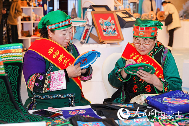 非遺手工技藝傳承人現(xiàn)場展示非遺技藝。內(nèi)蒙古文旅廳供圖