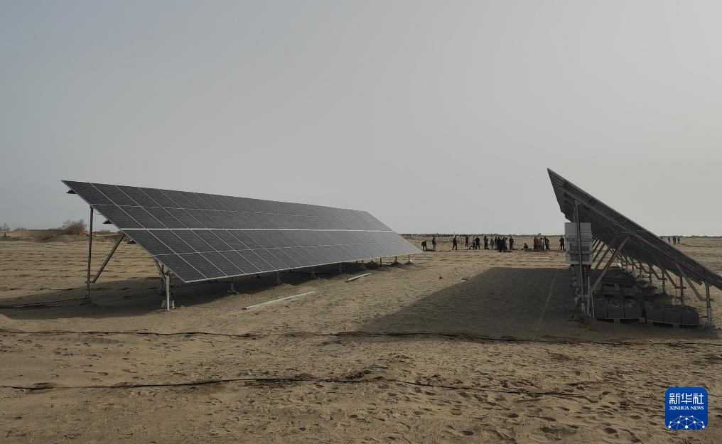 在塔克拉瑪干沙漠北緣的新疆阿克蘇地區(qū)沙雅縣,一家光伏企業(yè)正嘗試?yán)霉夥l(fā)電取水,這樣既能清潔光伏板,又能撫育耐堿、耐旱的沙生植物。