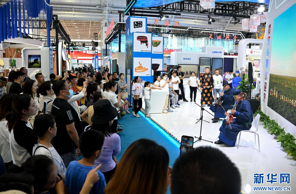 8月29日,參觀者在第八屆內(nèi)蒙古自治區(qū)文化產(chǎn)業(yè)博覽交易會上欣賞馬頭琴表演。