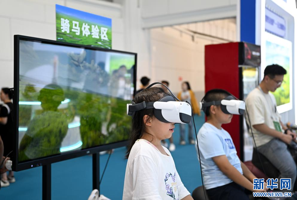 8月29日,參觀者在第八屆內(nèi)蒙古自治區(qū)文化產(chǎn)業(yè)博覽交易會上體驗虛擬騎馬。