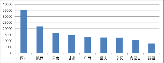 2013年西部省市自治區(qū)社會組織數(shù)量情況