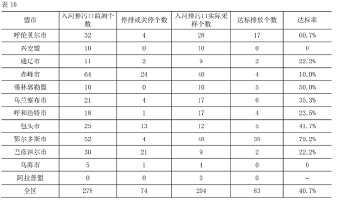 2017年全區(qū)各盟市入河排污口達標(biāo)評價表