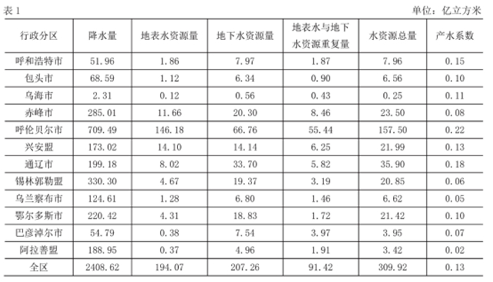 2017年內(nèi)蒙古水資源分區(qū)水資源量表