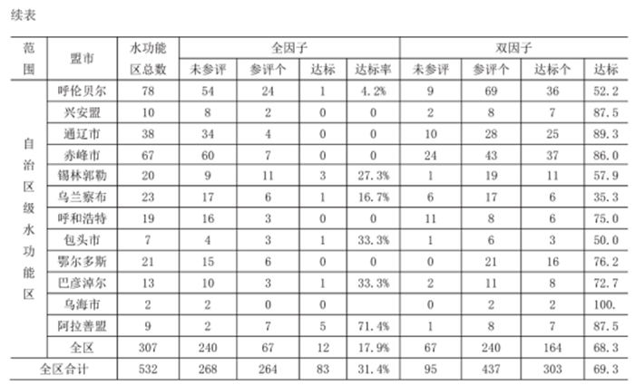 2017年全區(qū)各盟市水功能區(qū)達標(biāo)評價表