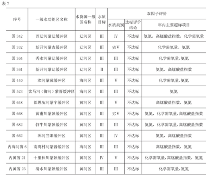 240個參評的自治區(qū)級水功能區(qū),按雙因子評價,達標(biāo)164個,占參加評價總數(shù)的68.3%;達標(biāo)河長7070.1公里,占參加評價河長總數(shù)的68.7%;主要超標(biāo)項目是化學(xué)需氧量、高錳酸鹽指數(shù)、氨氮;省界緩沖區(qū)參加評價水功能區(qū)7個,達標(biāo)6個,占參加評價數(shù)的85.7%。