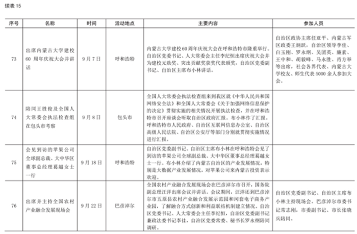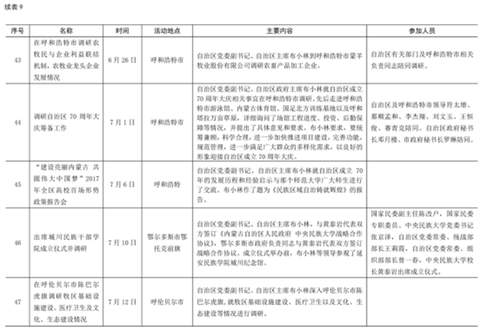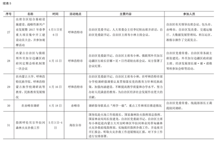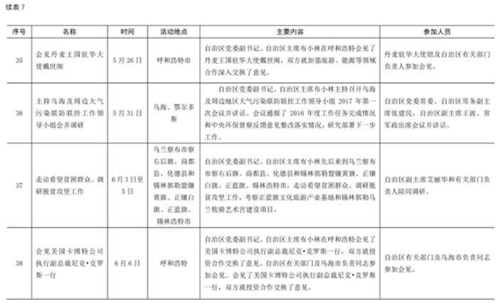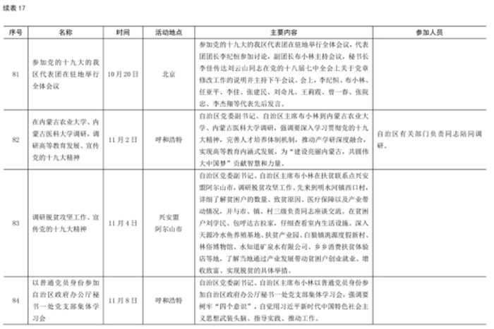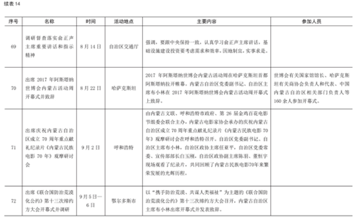 2017 年自治區(qū)主席出席重要活動情況統(tǒng)計(jì)
