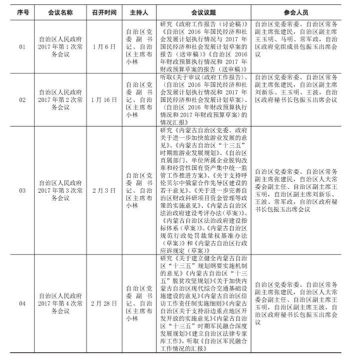 內(nèi)蒙古自治區(qū)人民政府常務(wù)會議統(tǒng)計(jì)表