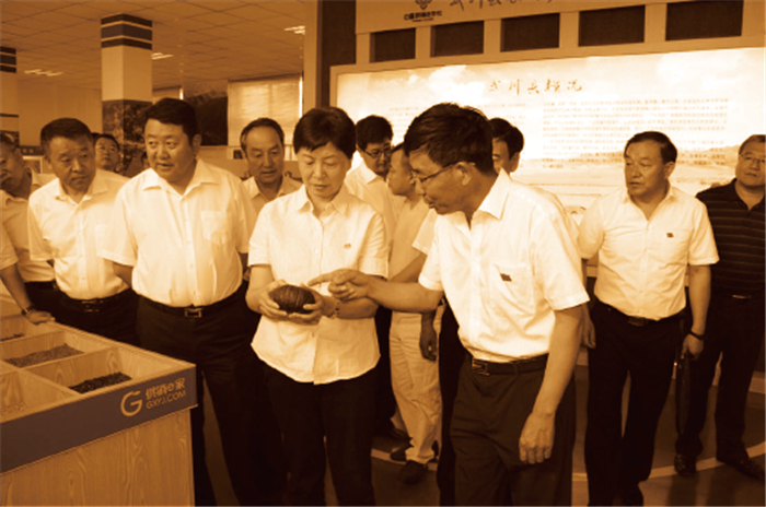2017年7月9日,中華全國供銷合作總社黨組書記、理事會主任王俠(前排右二)一行在內(nèi)蒙古自治區(qū)呼和浩特市武川縣供銷合作社調(diào)研農(nóng)產(chǎn)品流通情況(聯(lián)社 供)