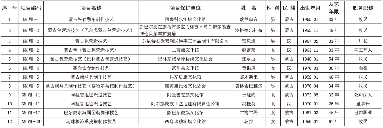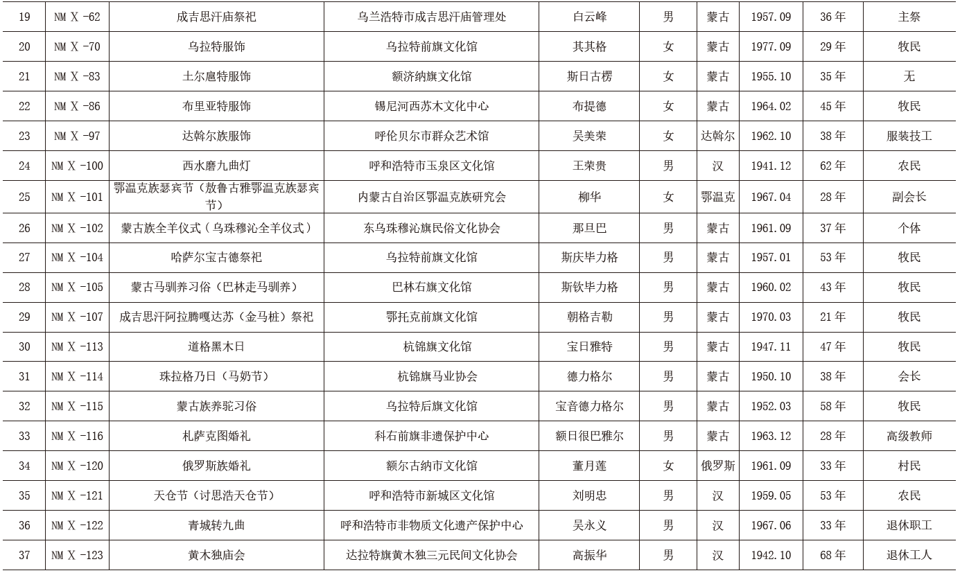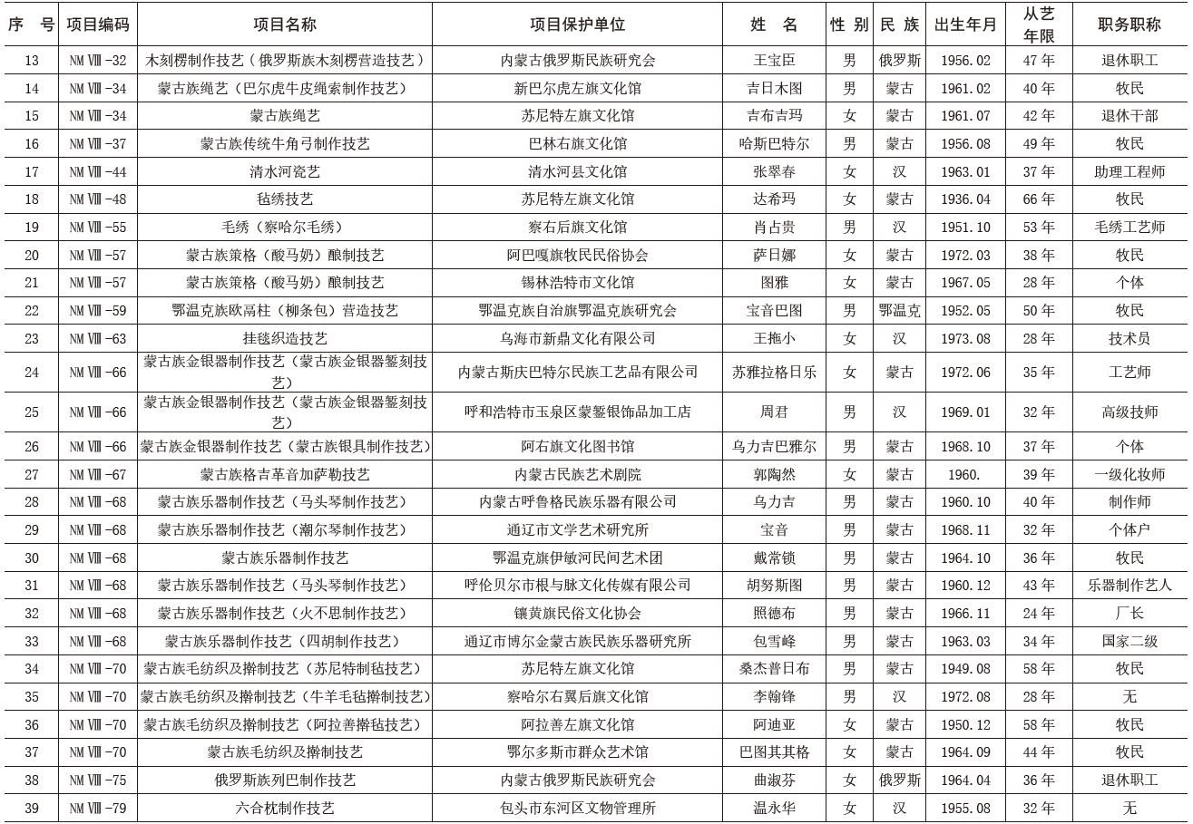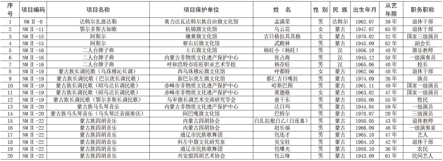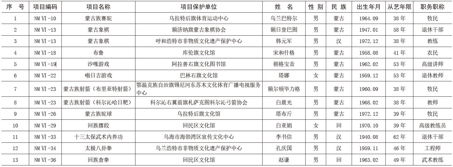 - 第六批自治區(qū)級非物質(zhì)文化遺產(chǎn)代表性項目代表傳承人名單