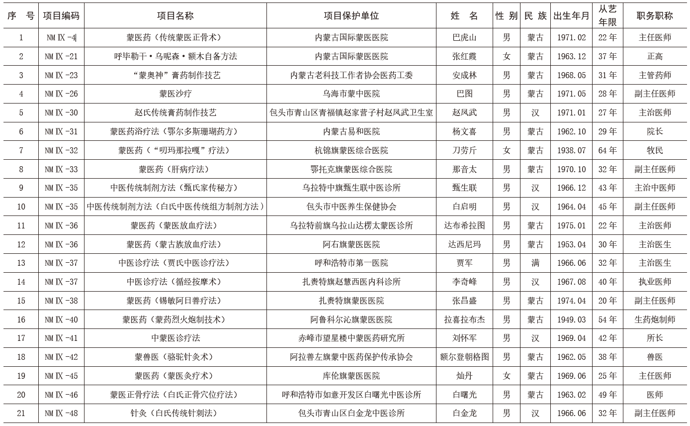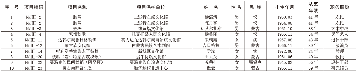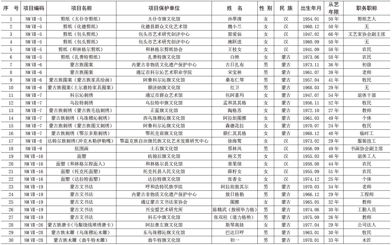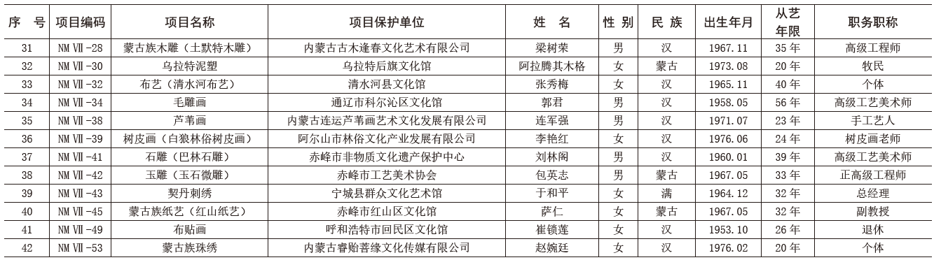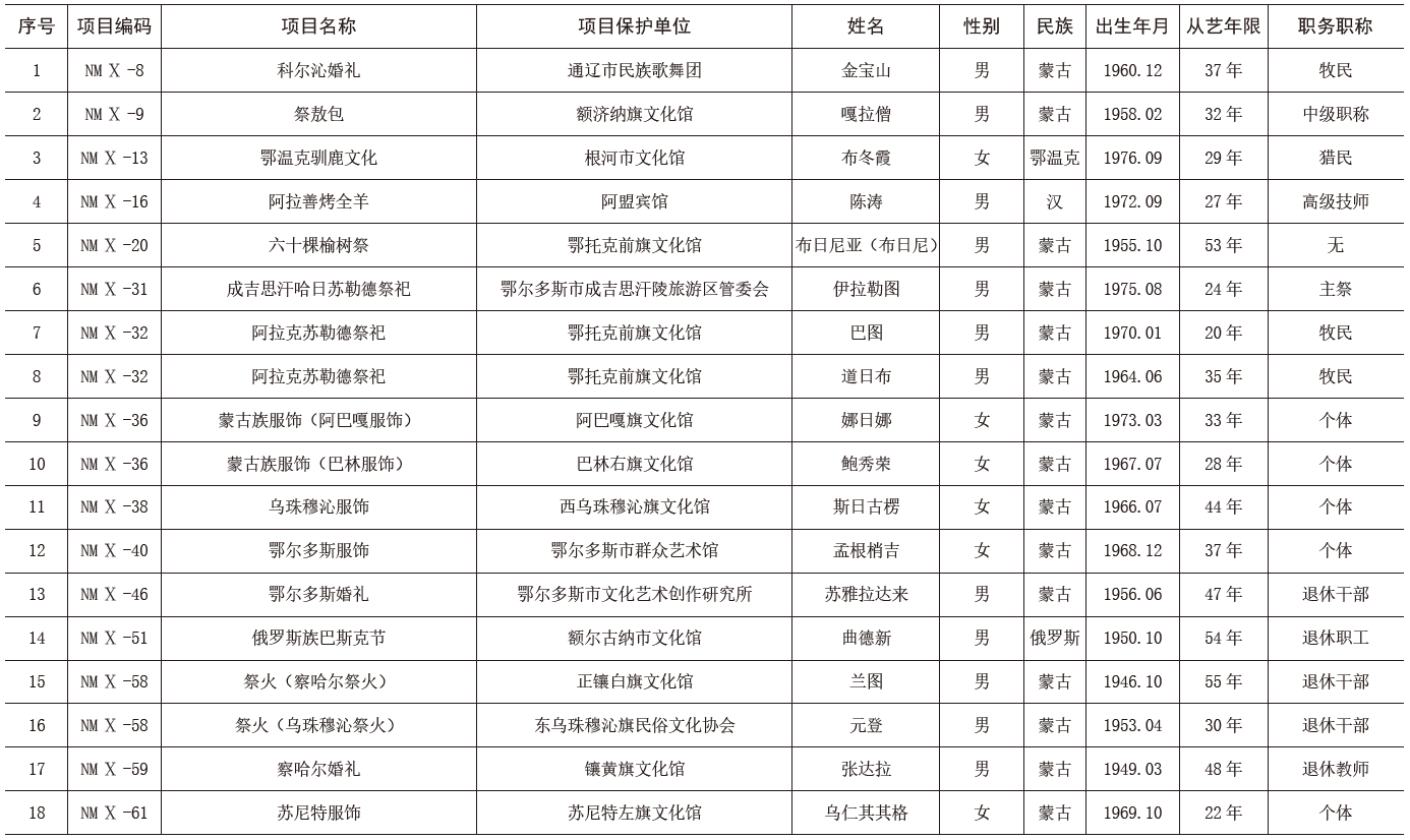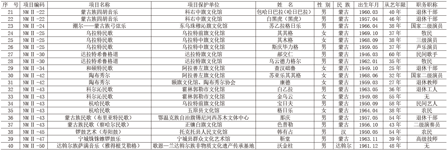 - 第六批自治區(qū)級非物質(zhì)文化遺產(chǎn)代表性項目代表傳承人名單