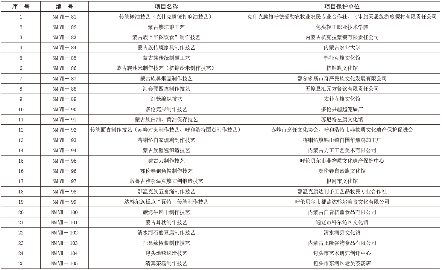 八、傳統(tǒng)技藝(25項(xiàng))