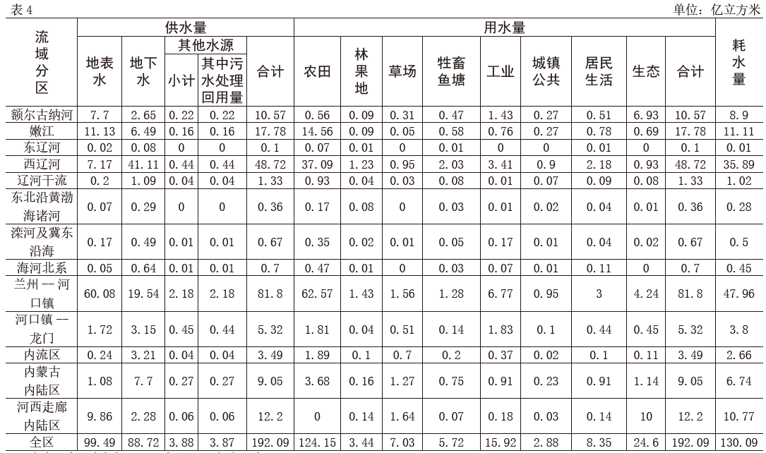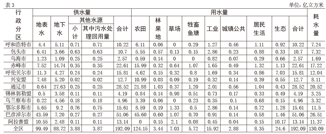 注:地表水源供水量中包括黑河調水量9.79億立方米。