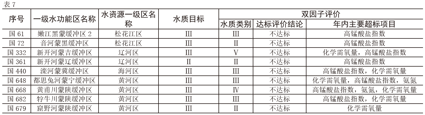 注:表7中水質類別為全年均值,達標的評判標準為年內80%及以上月份達標才為達標。