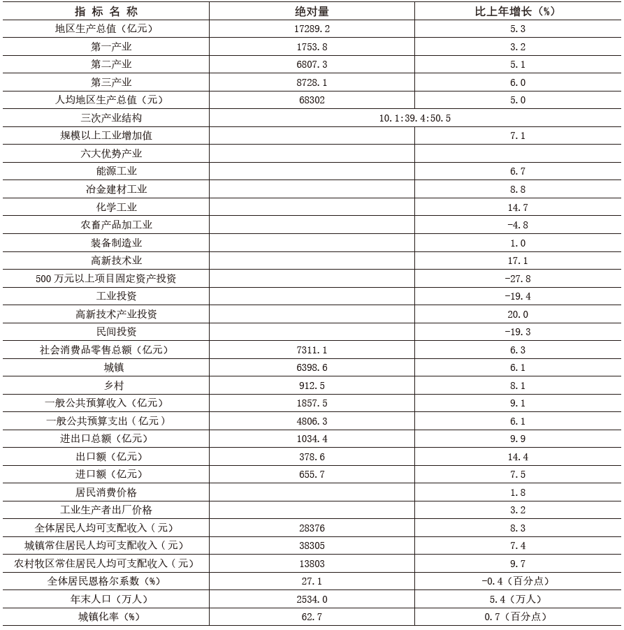 注:1.地區(qū)生產(chǎn)總值、規(guī)模以上工業(yè)增加值及其分類項目增長速度均按可比價計算;全區(qū)及分城鄉(xiāng)居民均可支配收入增速為名義增速;其他指標增長速度均按現(xiàn)價計算。