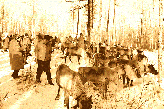 來自全國各地游客在敖魯古雅獵民點觀賞馴鹿(根河市人民政府辦公室供圖)