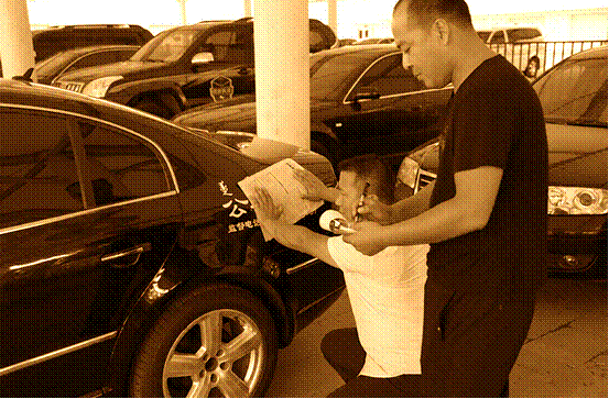 積極開展公務(wù)用車標(biāo)識化管理,圖為工作人員正在對公務(wù)用車張貼標(biāo)識 (李晶 攝)