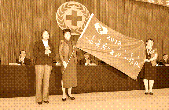 2018年5月4日,呼和浩特?內(nèi)蒙古自治區(qū)主席布小林為光明行醫(yī)療工作隊(duì)授旗(自治區(qū)紅十字會(huì) 提供)