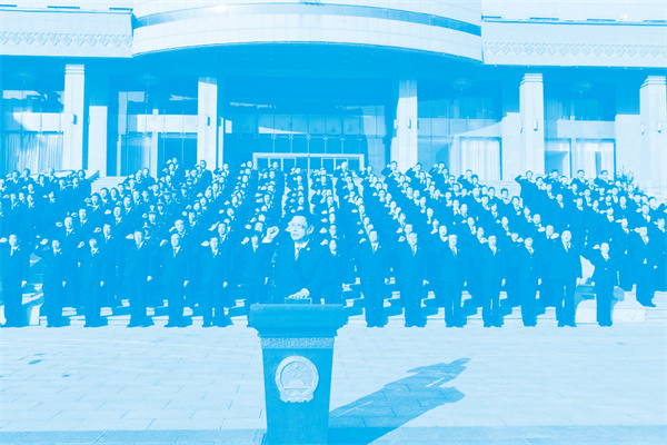 【自治區(qū)檢察院舉行憲法宣誓儀式】 12月4日,自治區(qū)檢察院舉行憲法宣誓儀式。檢察長(zhǎng)李琪林領(lǐng)讀誓詞,院機(jī)關(guān)300余名檢察干警參加宣誓。自治區(qū)人大代表王丹、張新、景偉、陳麗娟、鄭玲燕,自治區(qū)政協(xié)委員白雙成、姚哈斯應(yīng)邀監(jiān)誓。
