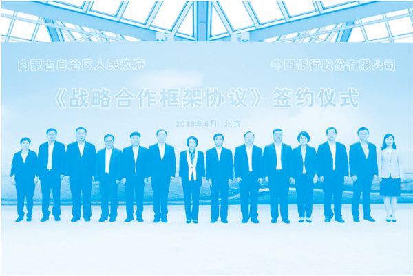 6月5日,中國(guó)銀行與內(nèi)蒙古自治區(qū)人民政府簽署戰(zhàn)略合作框架協(xié)議(中行內(nèi)蒙古分行 提供)