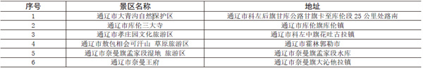 通遼市AAAA 級(jí)旅游區(qū)一覽表