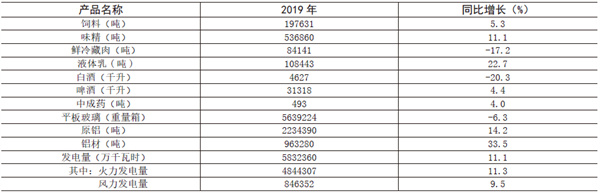 2019 年規(guī)模以上工業(yè)主要產(chǎn)品產(chǎn)量及增速統(tǒng)計(jì)表