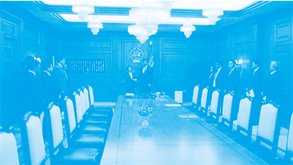 9月5日下午,自治區(qū)黨委書(shū)記、人大常委會(huì)主任李紀(jì)恒在烏蘭察布市會(huì)見(jiàn)出席第三屆中蒙博覽會(huì)暨東北亞區(qū)域合作高峰論壇的駐華使節(jié)團(tuán) (蘇茂盛 攝)