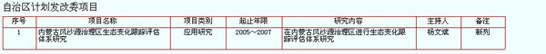 【科技合作】 在延續(xù)合作的項目中,與湖南師范大學、北京林業(yè)大學等單位合作研究的“亞洲中部水循環(huán)及其對全球變化的響應”和“毛烏素沙地固沙造林示范模式與技術研究”項目研究工作進展順利,另外2003年承擔的“氣候變化對中國內(nèi)蒙古干旱地區(qū)荒漠化的影響”和前兩項將在2006年全部完成。這些合作項目,將對自治區(qū)防沙止漠和綠化工程提供有力的科研數(shù)據(jù)。