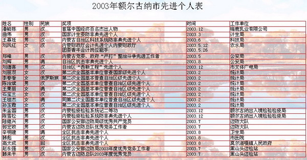 【森林大火】2003年5、6月旱情嚴(yán)重,天干物燥,額爾古納北部原始林區(qū)先后發(fā)生兩起森林大火,火線漫長,火勢兇猛,情況危急。額爾古納市委、市政府動員一切力量,誓死保住中國這塊最大的原始林區(qū)。先后調(diào)動4 000多名精干人員組成打火隊伍,日夜奮戰(zhàn)在森山老林百里火線上。在高溫和濃煙彌漫的火場,六大班子領(lǐng)導(dǎo)年富力強的都拼殺在火場第一線,年齡大的和身體較弱的組織后勤補給。打火隊伍共組織三個梯隊輪翻上陣,日夜不停。市政府撥款100多萬元和幾十輛卡車為打火勇士們做好后勤服務(wù)。經(jīng)過近1個月的苦戰(zhàn),終于撲滅大火,保住原始森林,無一人傷亡。一部分青年在火線上入黨,給其他青年樹立榜樣。