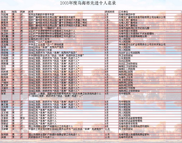 【抗擊非典】烏海市衛(wèi)生系統(tǒng)與各區(qū)、各部門密切配合,圍繞控制傳染源、切斷傳染途徑和保護易感人群三個防治重點,堅持抓好“堵、控、防、查、治”五個環(huán)節(jié),建立、健全領(lǐng)導(dǎo)組織網(wǎng)絡(luò)、宣傳信息網(wǎng)絡(luò)和疫情監(jiān)測防治網(wǎng)絡(luò),與全市人民形成全民群防群控的局面,成功地將SARS阻擊在城門之外,維護全市正常的生產(chǎn)、生活經(jīng)濟秩序,烏海市成為自治區(qū)兩個未被非典疫情傳染的盟市之一。
