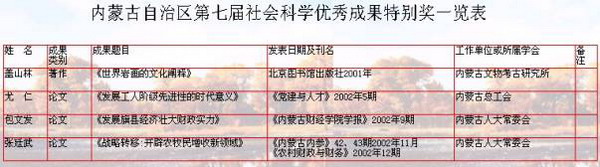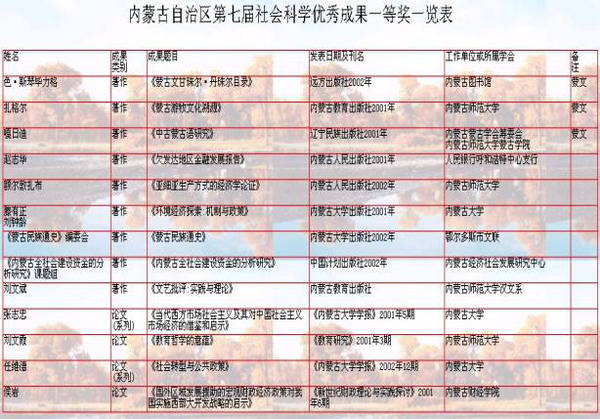 【評獎工作】成功組織自治區(qū)第七屆社會科學優(yōu)秀成果評獎工作。評獎工作在自治區(qū)黨委、政府的領導下,在全區(qū)廣大社科工作者、學會和盟市社科聯(lián)的支持下,經(jīng)歷成果申報、學會和盟市初評、學科專家組復評、自治區(qū)評委員終評(含公示)四個階段。從申報的876項成果中,評出一等獎13項,其中著作9項,論文4項;榮譽獎15項,其中著作10項,論文5項;特別獎4項,其中著作1項,論文3項;二等獎101項,其中著作44項,論文57項;三等獎136項,其中著作36項,論文100項;青年獎103項,其中著作9項,論文94項;優(yōu)秀獎445項。這屆獲獎成果涵蓋全區(qū)社會科學的各個重要學科,基礎學科245項,占總數(shù)的30%;應用學科572項,占總數(shù)的70%,來自盟市、旗縣的獲獎成果150多項,占總數(shù)的19%。這些成果中,有的受到國內(nèi)外、區(qū)內(nèi)外的重視和肯定,有地對自治區(qū)黨委和政府決策起到參謀咨詢作用,有的為普及社會科學知識發(fā)揮重要作用,有的填補國家和自治區(qū)社會科學研究領域的某些空白,代表自治區(qū)社會科學的先進水平。