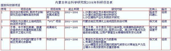 【科研項(xiàng)目】是年,林科院承擔(dān)科研項(xiàng)目39項(xiàng),其中科技跨越項(xiàng)目1項(xiàng)、科技攻關(guān)項(xiàng)目15項(xiàng)、自然科學(xué)基金項(xiàng)目5項(xiàng)、引智及引進(jìn)技術(shù)項(xiàng)目7項(xiàng)、“973”專題1項(xiàng)、科技支撐項(xiàng)目2項(xiàng)、科技成果推廣項(xiàng)目3項(xiàng)、科技成果轉(zhuǎn)化項(xiàng)目1項(xiàng)、國(guó)際合作項(xiàng)目3項(xiàng)、科技扶貧項(xiàng)目1項(xiàng)(見內(nèi)蒙古林業(yè)科學(xué)研究院2004年科研項(xiàng)目表)。