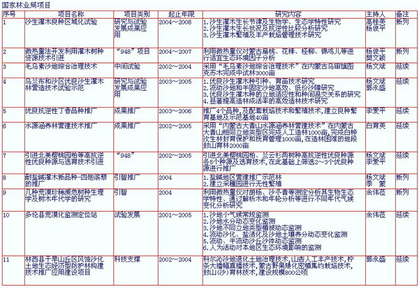 【科研成果】是年,內(nèi)蒙古林科院承擔(dān)的“天牛生物控制技術(shù)開發(fā)與應(yīng)用”等3個(gè)科技部農(nóng)業(yè)科技成果轉(zhuǎn)化項(xiàng)目,通過科技部的驗(yàn)收。承擔(dān)的國(guó)家林業(yè)局重點(diǎn)科研項(xiàng)目“沙生灌木良種區(qū)域化試驗(yàn)”制定工作計(jì)劃,落實(shí)庫布其沙漠和科爾沁沙地兩處試驗(yàn)示范區(qū)具體地點(diǎn)和試驗(yàn)地塊,完成試驗(yàn)區(qū)規(guī)劃方案及試驗(yàn)樹種定植設(shè)計(jì),根據(jù)不同灌木種特性摸索種子和苗條處理及保存技術(shù),完成播種繁殖,部分樹種完成嫩枝扦插繁殖;承擔(dān)的自治區(qū)科技廳應(yīng)用研究項(xiàng)目“內(nèi)蒙古林木種質(zhì)資源基因庫建設(shè)和擴(kuò)繁技術(shù)研究”及1個(gè)招標(biāo)項(xiàng)目和1個(gè)合作項(xiàng)目都按照合同規(guī)定全面完成計(jì)劃任務(wù),計(jì)劃2005年接受科技廳的驗(yàn)收。自治區(qū)招投標(biāo)項(xiàng)目“綠色食品枸杞開發(fā)研究”在巴彥淖爾市建立枸杞良種選育及豐產(chǎn)栽培研究試驗(yàn)基地,選育出“先杞1號(hào)”和“先杞2號(hào)”兩個(gè)枸杞優(yōu)良新品種,完成新品種的現(xiàn)場(chǎng)測(cè)試,得到專家的肯定,篩選出適宜的無公害防治農(nóng)藥和豐產(chǎn)栽培技術(shù)。農(nóng)業(yè)科技成果轉(zhuǎn)化項(xiàng)目“干旱、半干旱區(qū)微灌、噴灌設(shè)備的優(yōu)化和灌溉制度及配肥技術(shù)工程化示范”項(xiàng)目完成節(jié)水灌溉示范面積750畝,其中在毛烏素沙地防沙治沙實(shí)驗(yàn)中心完成500畝(微灌、噴灌);在內(nèi)蒙古林木種苗站沙爾沁基地完成200畝(微灌、噴灌);在兵州亥育苗科研基地完成50畝(噴灌),完成年度計(jì)劃目標(biāo);“十五”期間攻關(guān)項(xiàng)目“抗旱保水技術(shù)產(chǎn)品和配套使用技術(shù)”,進(jìn)行試驗(yàn)研究,擴(kuò)大荒漠藻固沙試驗(yàn)面積,對(duì)噴灑的荒漠藻生長(zhǎng)量以及結(jié)皮硬度進(jìn)行測(cè)定。對(duì)荒漠藻結(jié)皮進(jìn)行對(duì)比研究。