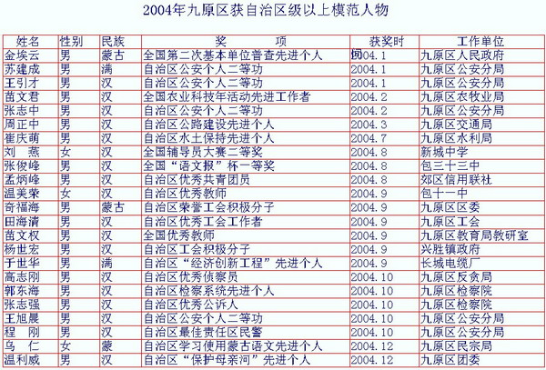 【文化】4月,九原區(qū)投資120萬元改建區(qū)青少年校外活動(dòng)中心。5月,九原區(qū)成立區(qū)文物管理所。6月,九原區(qū)三十三中民樂隊(duì)表演的民樂合奏《大青山下》,在全國兒童藝術(shù)表演大賽上獲得一等獎(jiǎng)。