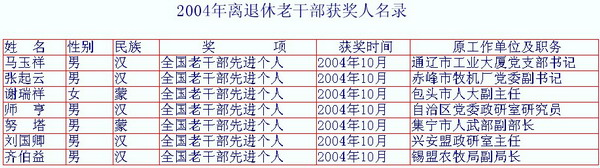 【表彰活動】4月4日,在自治區(qū)政府禮堂召開全區(qū)老干部先進(jìn)個人和先進(jìn)離退休干部黨支部表彰大會。會上對全區(qū)108名老干部先進(jìn)個人和31個先進(jìn)離退休干部黨支部進(jìn)行表彰。表彰大會由自治區(qū)黨委常委、組織部長陳朋山主持,自治區(qū)黨委副書記、紀(jì)檢委書記巴特爾作重要講話。自治區(qū)黨委常委、宣傳部長張國民,自治區(qū)人大常委會副主任萬繼生,自治區(qū)副主席郭子明等領(lǐng)導(dǎo)同志出席大會并為“雙先”代表頒獎。全區(qū)老干部先進(jìn)個人和先進(jìn)離退休干部黨支部代表,部分區(qū)直機(jī)關(guān)離退休干部黨支部書記,各盟市委分管書記、組織部長、老干部局長及辦公室主任,自治區(qū)各部門、各大企事業(yè)單位離退休人員工作處處長(主任),共280多人參加表彰大會。