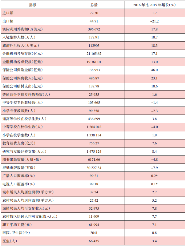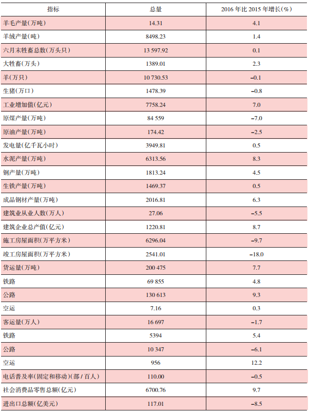 2016年全區(qū)主要經(jīng)濟指標(biāo)一覽表
