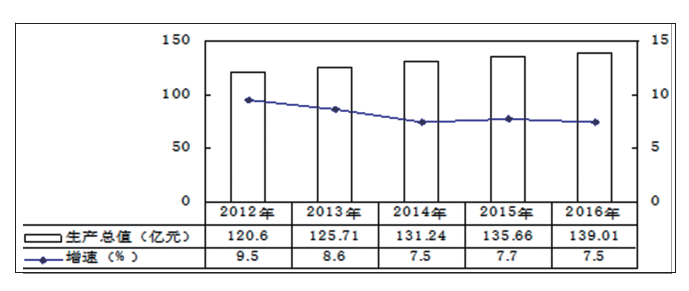 圖1 2012—2016年杭后地區(qū)生產(chǎn)總值及增長速度