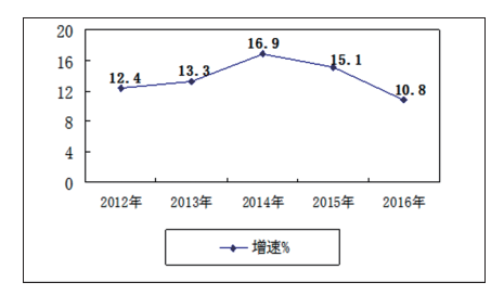 圖 3 2012—2016年杭后固定資產(chǎn)投資增長速度