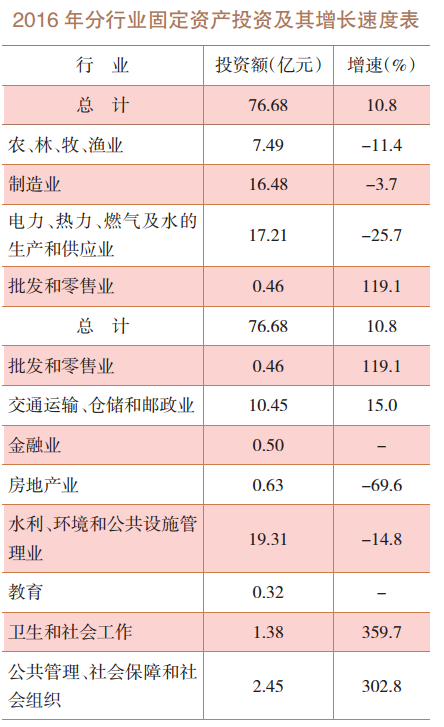 2016年分行業(yè)固定資產(chǎn)投資及其增長速度表