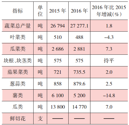2016年全旗主要蔬菜及特種作物產(chǎn)量完成情況表