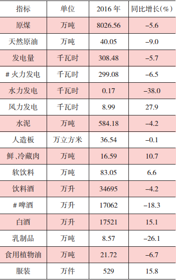 2016年新右旗主要工業(yè)產(chǎn)品產(chǎn)量完成情況表