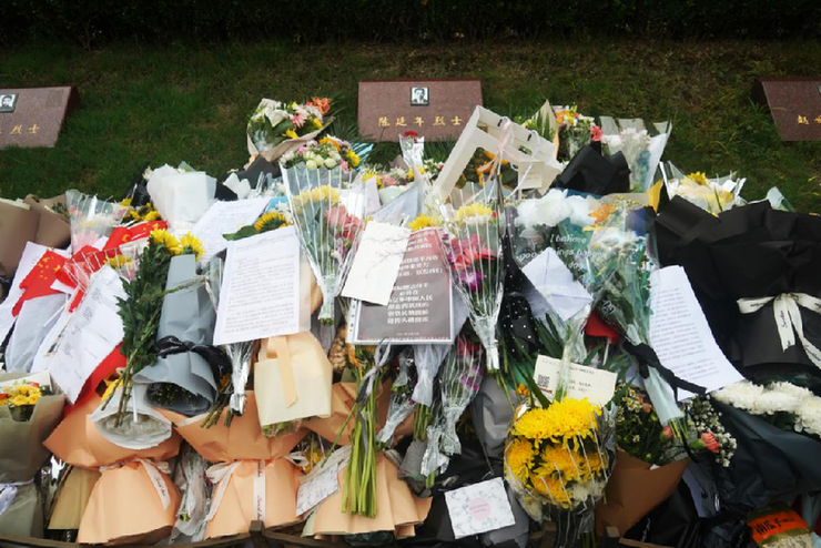 資料圖片 陳延年烈士墓前放滿鮮花和信件。周正 攝 新華網(wǎng) 發(fā)