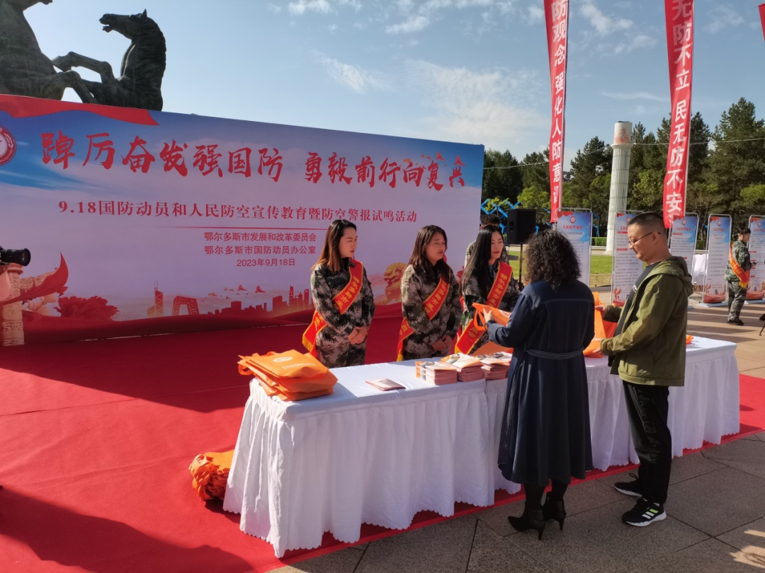 今天,主題為“踔厲奮發(fā)強(qiáng)國(guó)防 勇毅前行向復(fù)興”“9·18人民防空警報(bào)試?guó)Q日”暨全民國(guó)防教育月主題活動(dòng)在鄂爾多斯市康巴什區(qū)雙駒廣場(chǎng)舉行。活動(dòng)現(xiàn)場(chǎng)設(shè)置宣傳臺(tái)向市民發(fā)放國(guó)防動(dòng)員和人民防空宣傳冊(cè)以及宣傳品,通過(guò)全方位立體式宣傳,營(yíng)造國(guó)防動(dòng)員、人民防空人人關(guān)心、人人參與、人人維護(hù)的良好氛圍。