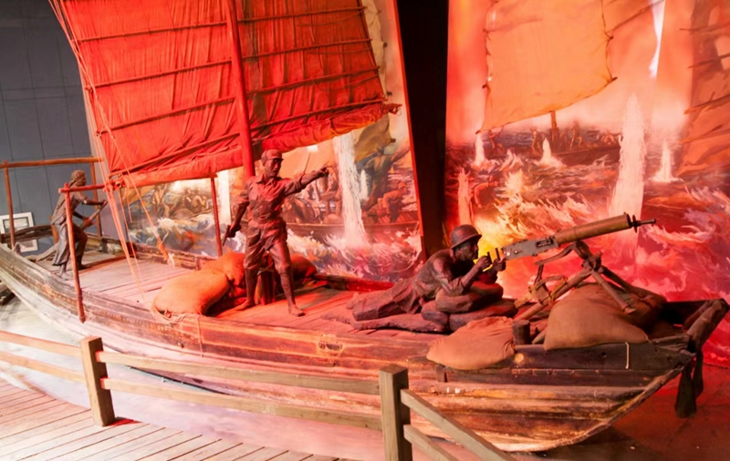 紀念館內展覽的渡江木船。中國人民解放軍海軍誕生地紀念館供圖