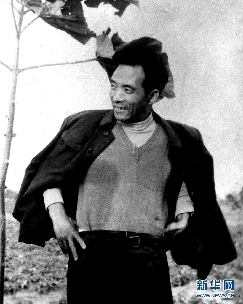 焦裕祿在泡桐前留影(資料照片)。