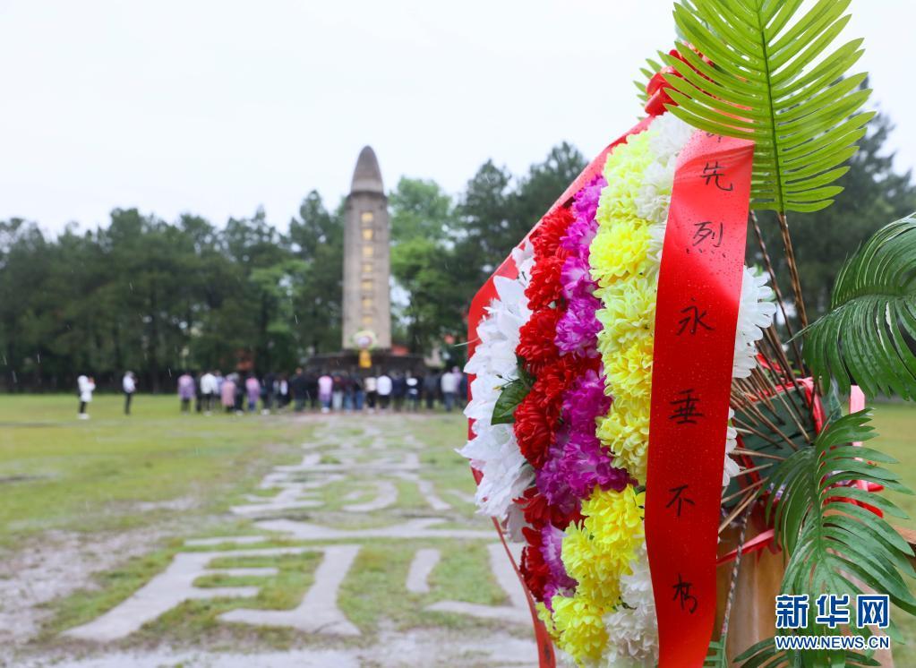 游客在江西瑞金市葉坪紅色旅游景區(qū)內(nèi)瞻仰紅軍烈士紀(jì)念塔(2019年5月6日攝)。