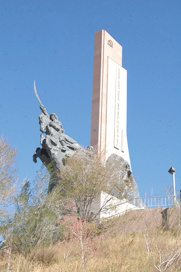 百靈廟抗日武裝暴動(dòng)紀(jì)念碑位于包頭市達(dá)爾罕茂明安聯(lián)合旗(簡(jiǎn)稱達(dá)茂旗)百靈廟鎮(zhèn)女兒山山頂。?